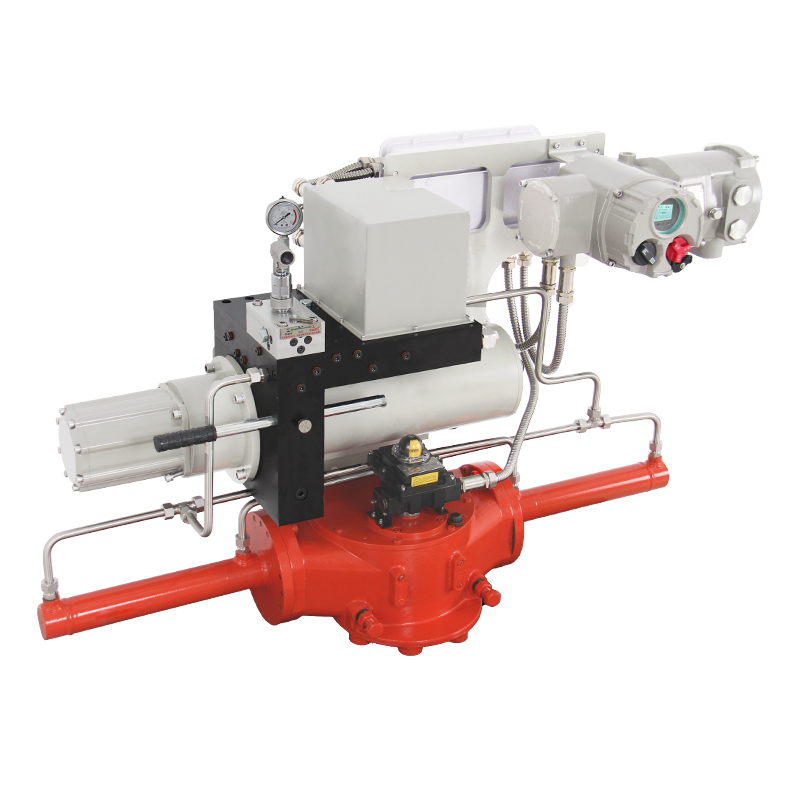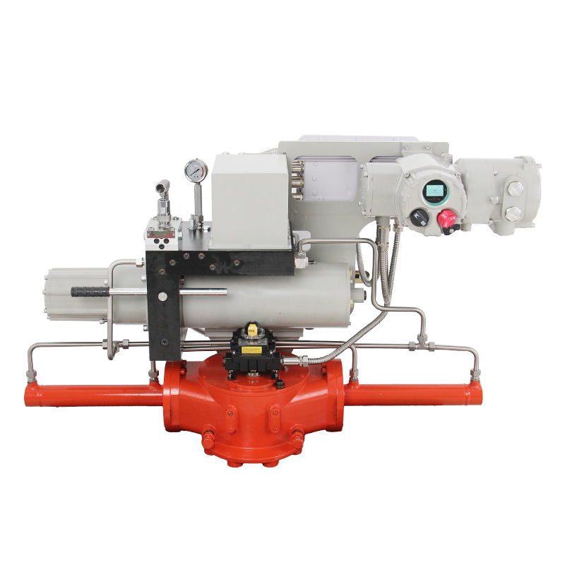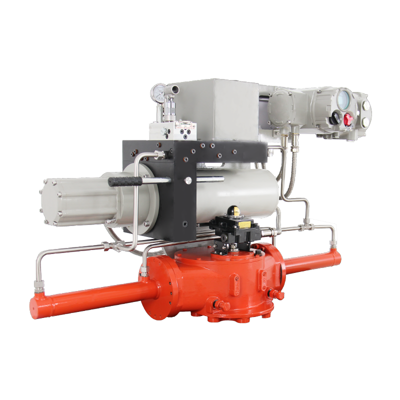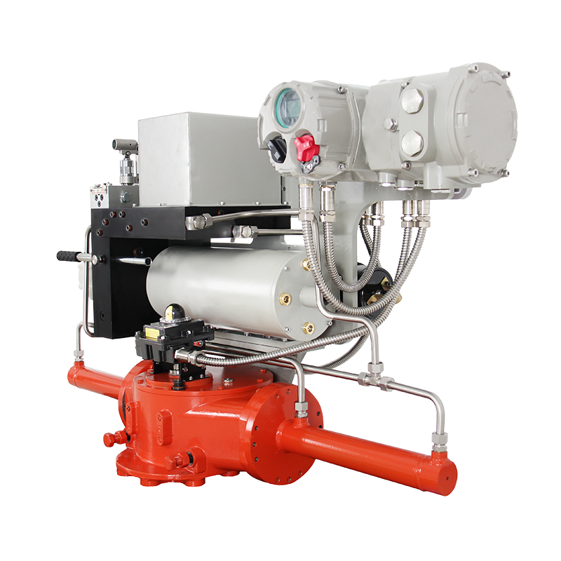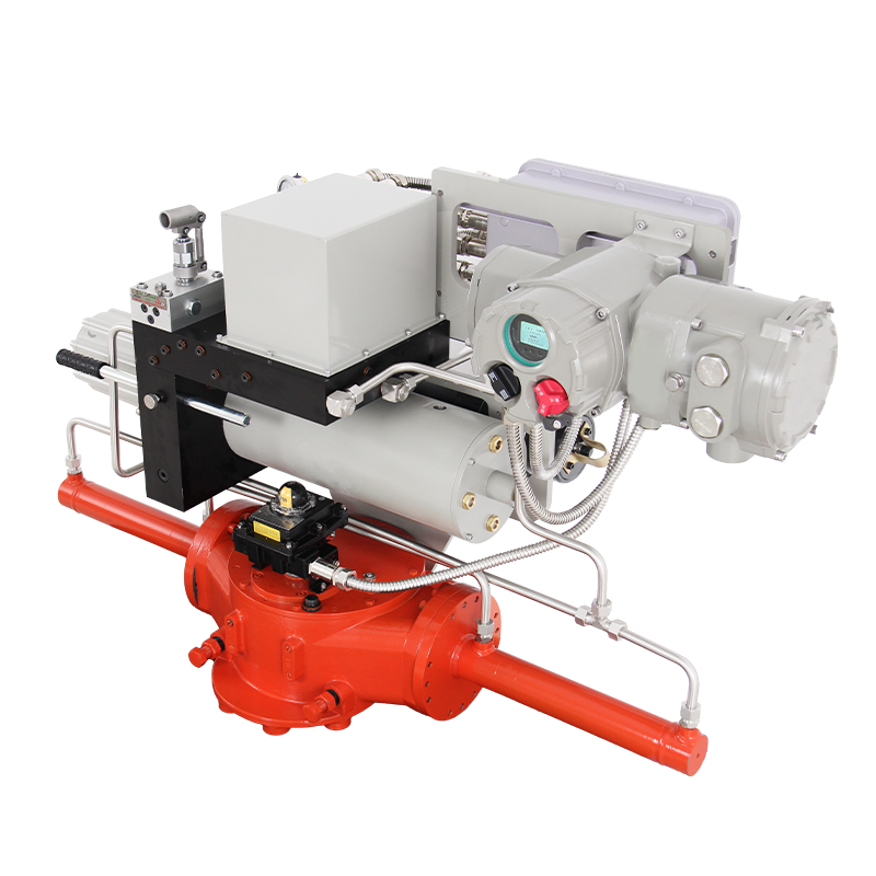 Интеллектуальный электрогидравлический привод клапана оснащен гидроаккумулятором, который при отключении питания обеспечивает аварийное открытие, закрытие или удержание позиции согласно настройкам.